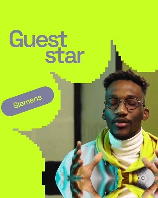 The design features a bright, lime-green background with irregular, geometric cutouts that frame the text and the subject. The composition is modern and bold, using negative space effectively to draw focus to the text and the person.