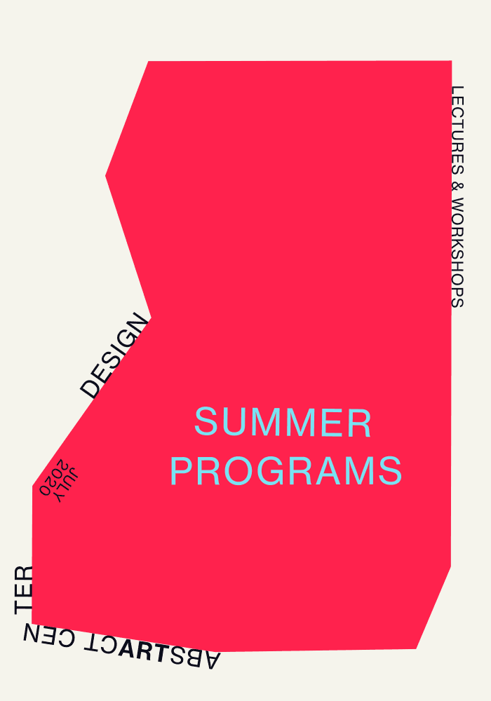 The design is a bold, minimalist graphic utilizing a vibrant coral-red as its primary field against a neutral off-white background. It employs strong geometric shapes and clear, capitalized text to convey an academic or program announcement with a modern, assertive feel.