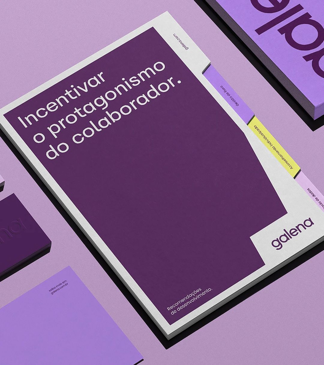 The design features a clean, modern layout dominated by deep purple and lighter lavender tones, utilizing ample white space to emphasize the main text. The visual language is professional, corporate, and inviting, suggesting a focus on collaboration and positive reinforcement.