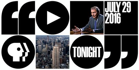 A bold, modern promotional graphic combining stark black and white geometric shapes with photographic elements and typography. The design uses a grid-based layout featuring a play button icon, cityscape imagery, and fragmented text to create a dynamic, contemporary media or broadcast aesthetic.