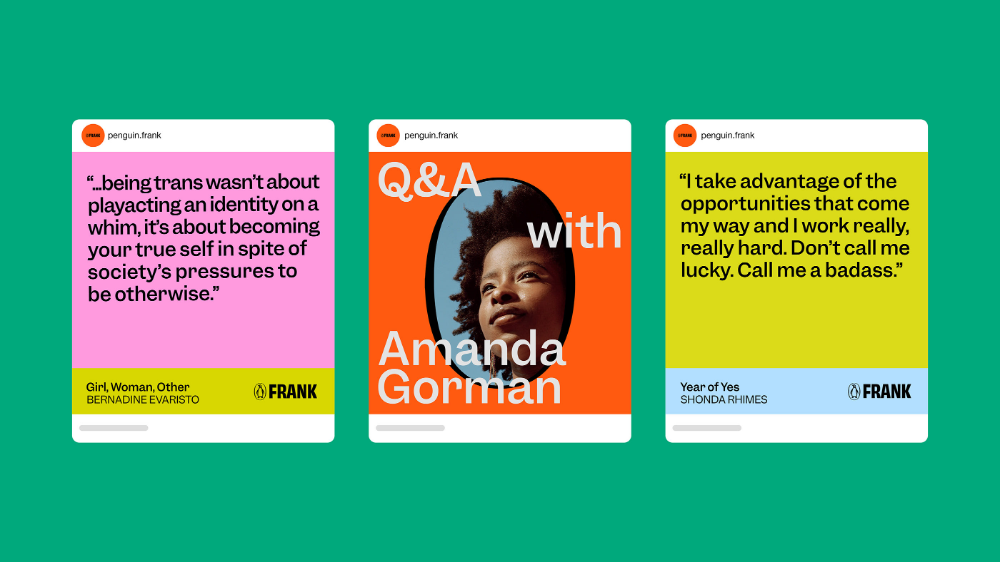 The image displays three distinct, clean cards or panels against a vibrant green background, suggesting a modern, professional presentation style. The design uses strong color blocking and clear typography to present quotes or statements in an engaging, yet structured manner.