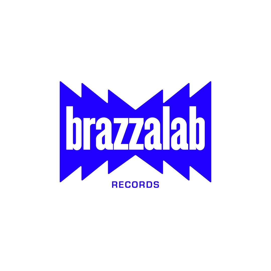 The logo features bold, sharp, jagged shapes forming a stylized wordmark for 'brazzalab'. The design uses high contrast between deep blue and white space, conveying a modern, energetic, and professional aesthetic suitable for music or production.