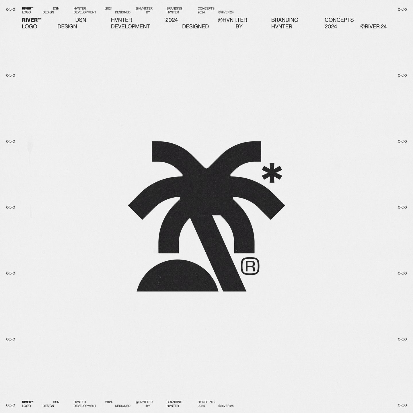 A minimalist logo design featuring a stylized palm tree rendered in bold black silhouette against a light gray background. The design demonstrates clean geometric abstraction with a modern, iconic approach to tropical imagery, accompanied by a registered trademark symbol.