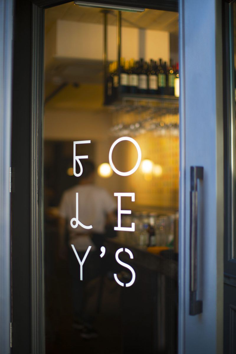 This image showcases a sophisticated use of light and transparency, using etched typography to create an inviting yet mysterious glimpse into an establishment. The visual language relies heavily on depth of field and warm backlighting to establish a moody, upscale atmosphere.