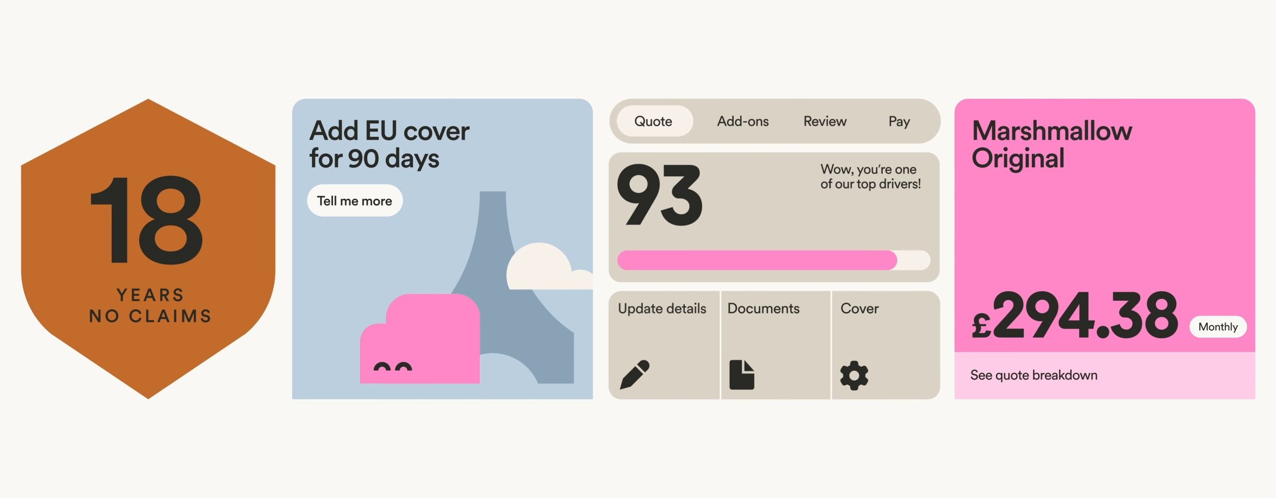 This design employs a modern, flat visual language characterized by clear color blocking and distinct geometric shapes to organize complex information. The style is clean and highly functional, using a limited palette to create a trustworthy yet approachable user interface mockup.