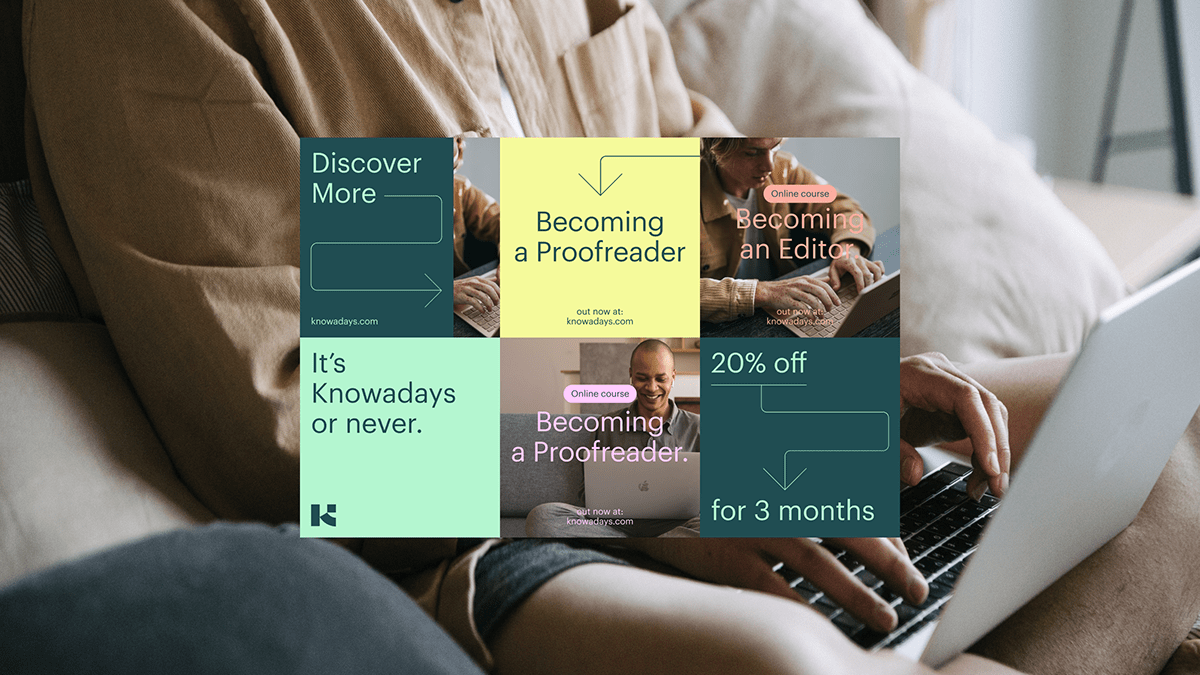 The image features a clean, modern display panel contrasting stark black text with a vibrant, warm-toned photographic background. The design uses strong geometric lines to divide the space, creating a sophisticated and professional visual hierarchy.
