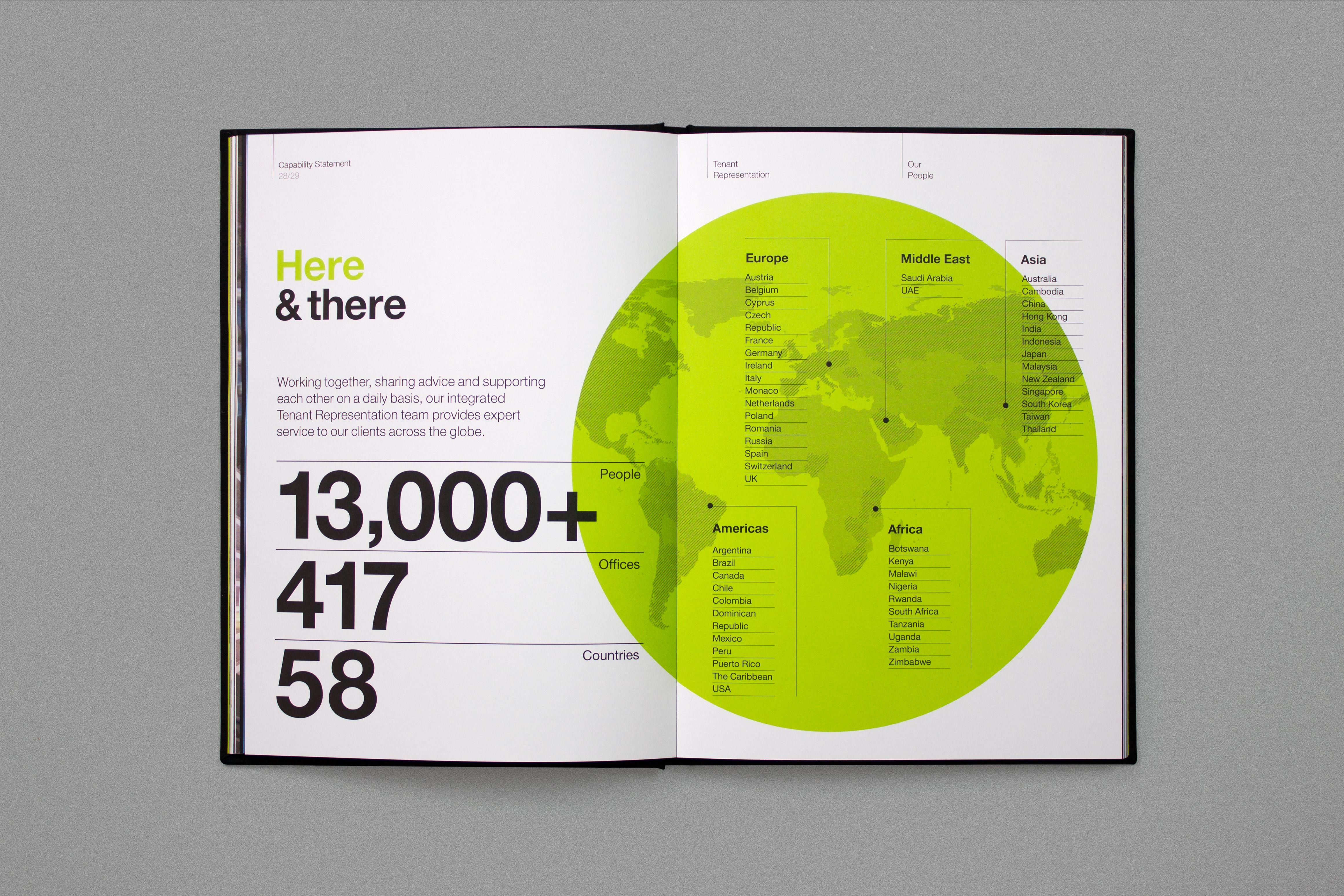 This design utilizes a clean, professional layout to present quantitative data regarding global reach. The visual language is modern and corporate, relying on clear typography and a prominent, color-coded world map to effectively communicate scale and scope.