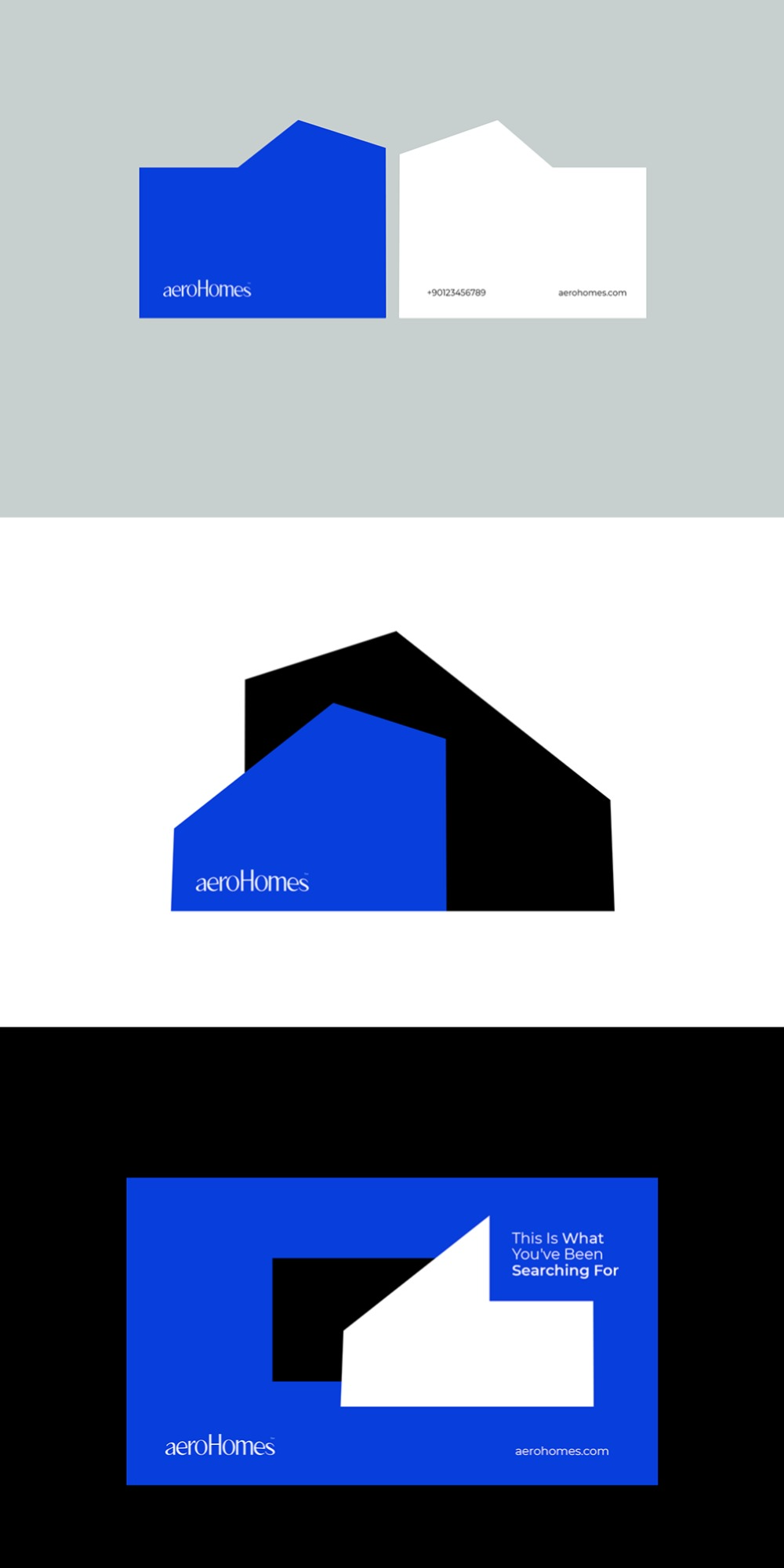 The design is minimalist, employing a stark black and white palette to convey sophistication and clarity. It uses ample negative space to focus attention on the central logo mark and sparse text, resulting in a clean, corporate, and high-end aesthetic.