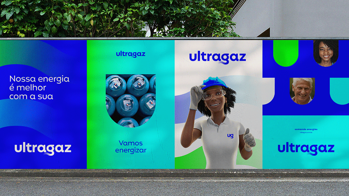 This design utilizes a clean, modern visual language characterized by strong color blocking and clear segmentation to present corporate branding. The layout is highly structured, using distinct panels to guide the viewer through the message effectively.