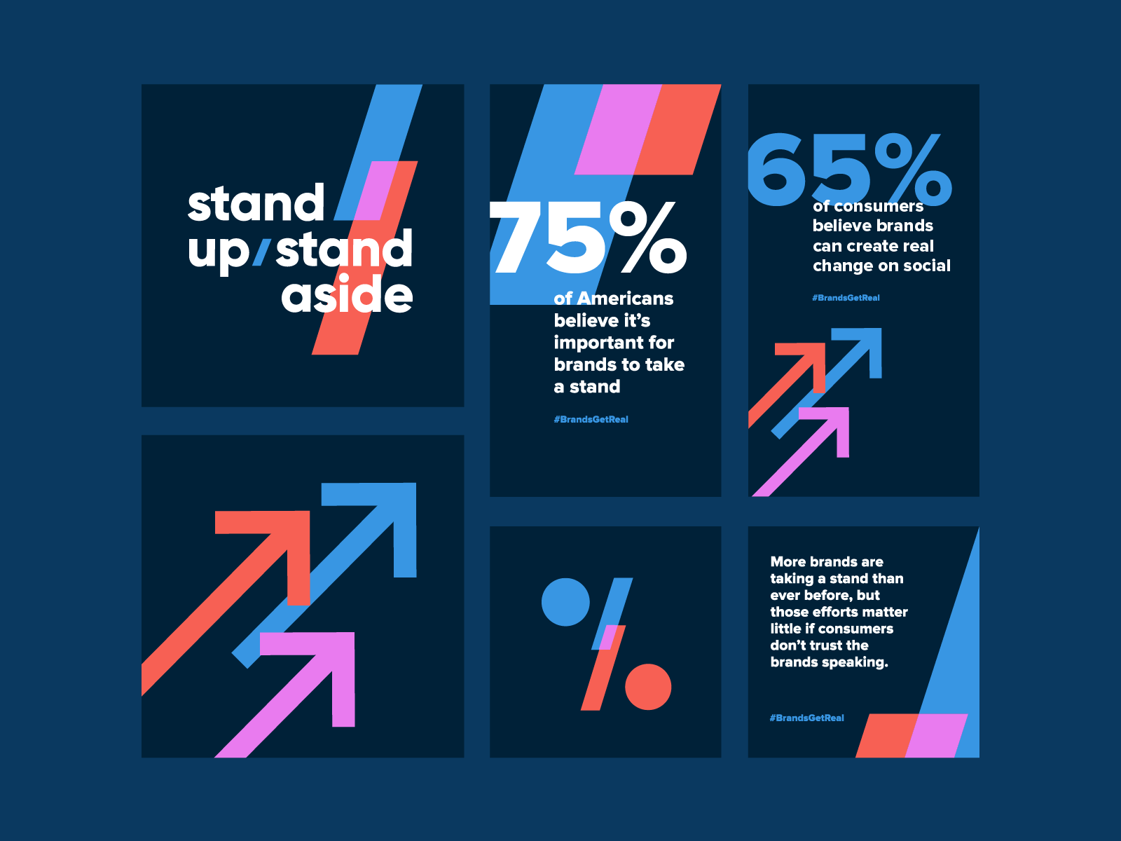 This design utilizes a clean, modern aesthetic to present statistical data and social commentary through bold geometric shapes and contrasting colors. The visual language is assertive and direct, effectively using upward-pointing arrows to symbolize growth or advocacy.