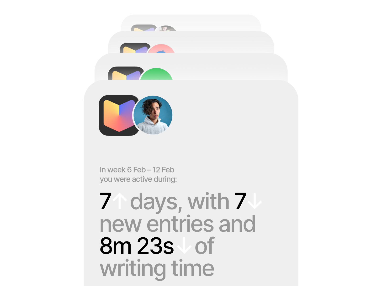 The image displays a clean, modern user interface element, likely from an application tracking feature, characterized by soft shadows and clear data presentation. The design emphasizes readability and a professional, minimalist aesthetic suitable for analytical dashboards.