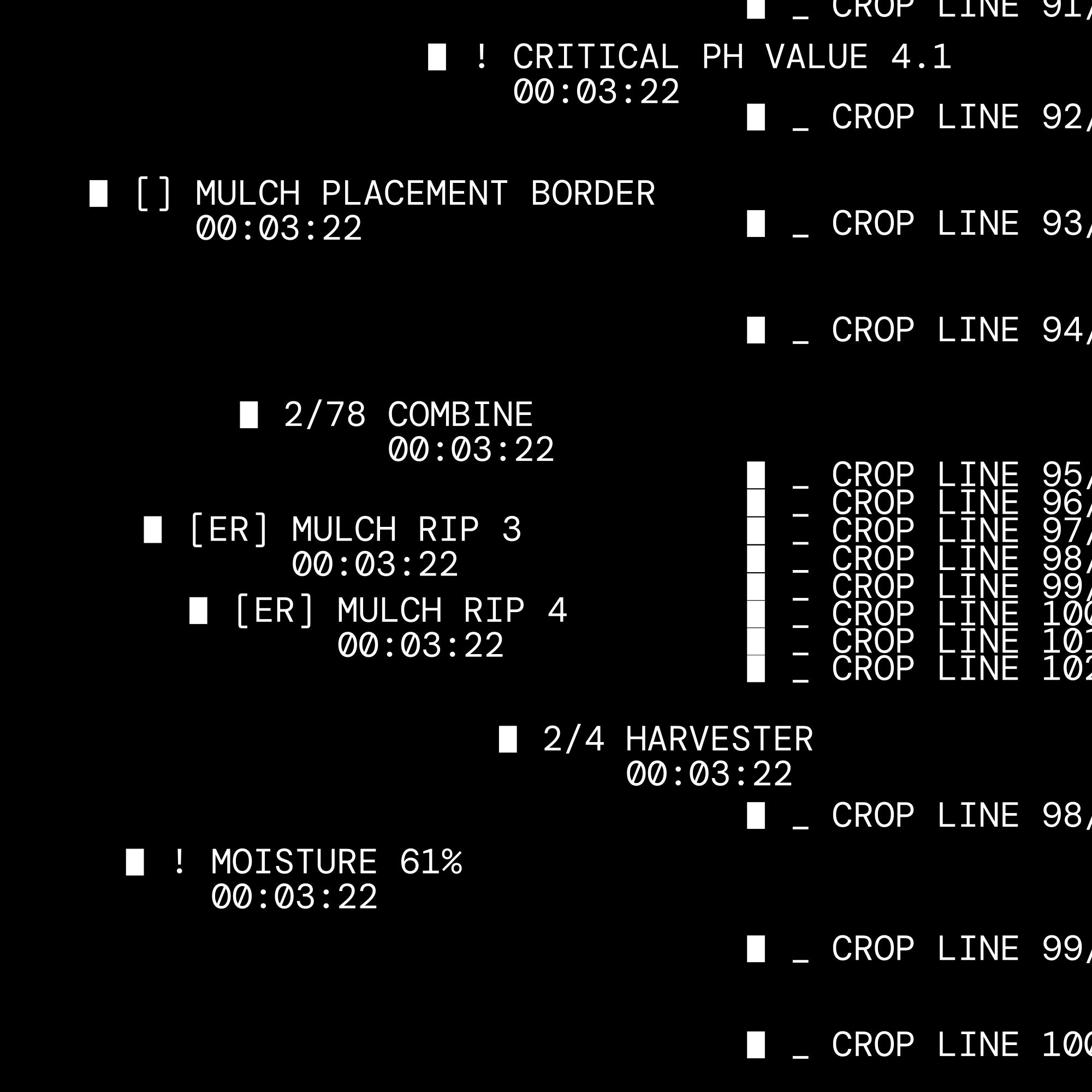 This image presents a highly functional, data-dense interface characterized by stark contrast and precise alignment. The visual language is purely utilitarian, prioritizing the display of detailed numerical information over aesthetic appeal.