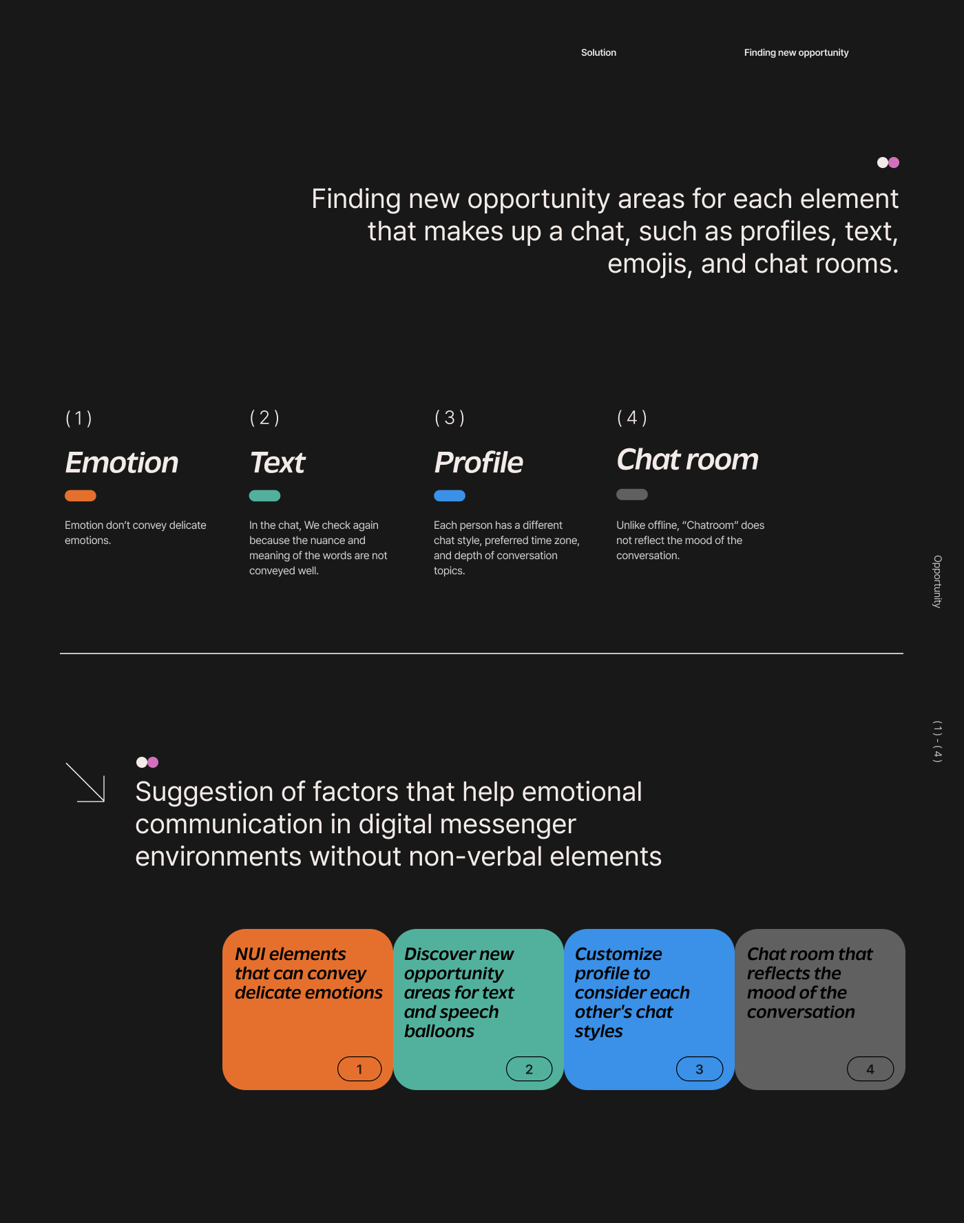 The design is clean, minimalist, and professional, utilizing a dark background with light text and subtle segmentation to present information clearly. The visual language is modern and functional, focusing on breaking down complex concepts into discrete elements.