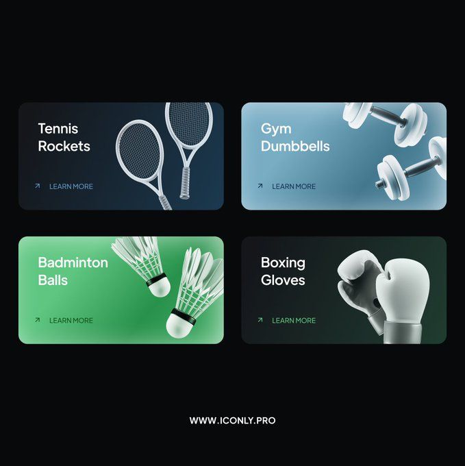 The image presents a clean, modern, and minimalist iconographic set against a dark background. It uses simple line art or silhouette representations of sports equipment, organized into distinct rectangular modules for easy recognition and navigation.