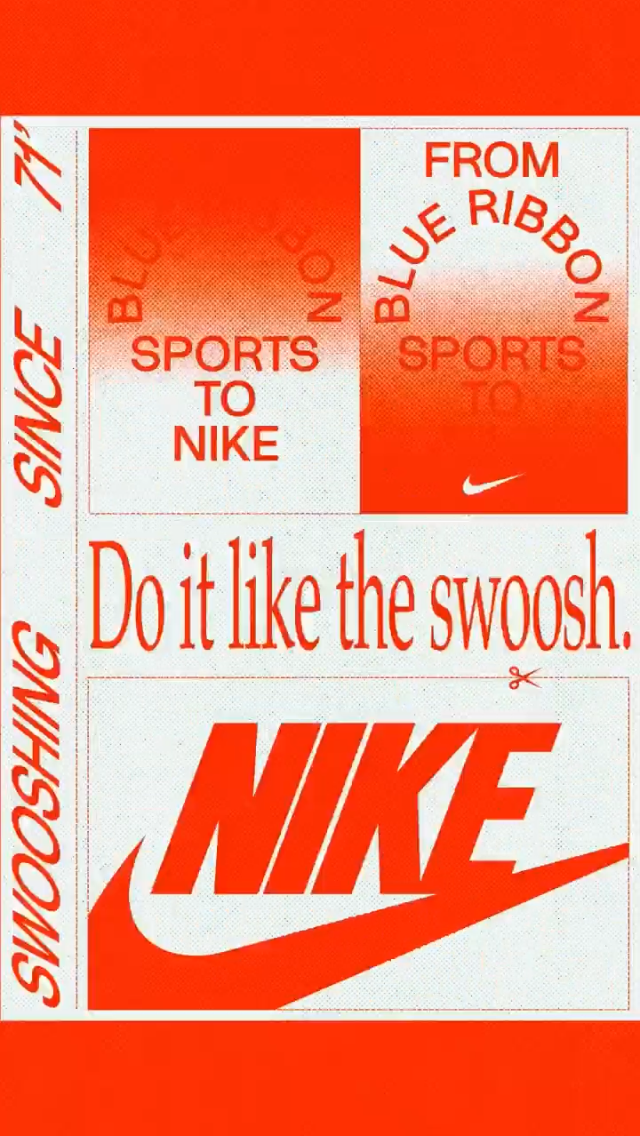 This design utilizes a high-contrast, vibrant palette to convey high energy and athletic nostalgia. The visual language blends bold typography with angular graphic elements, effectively communicating a legacy connection between historical sports (Ribbon Blue) and modern Nike branding.