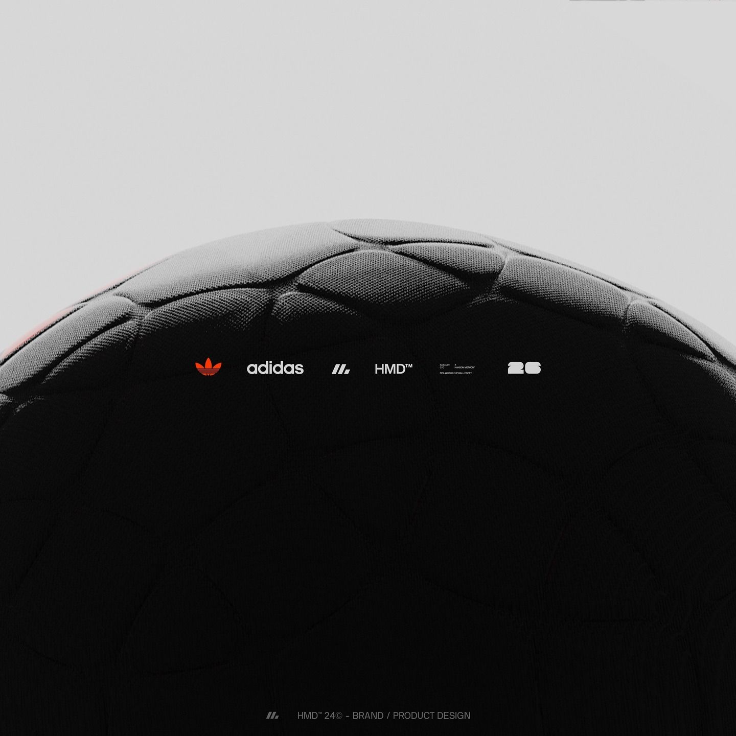 A minimalist product showcase featuring a sleek black spherical or dome-like object against a neutral gray background. The design emphasizes clean lines, subtle lighting, and premium branding with small logos arranged horizontally across the upper portion. The composition conveys sophistication and modern industrial aesthetics.