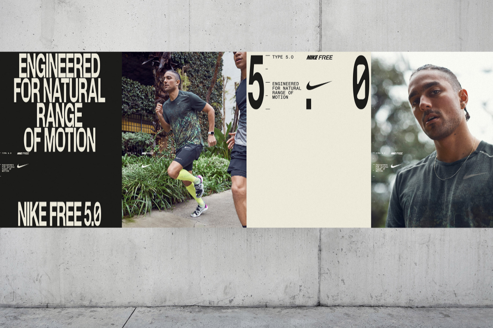 This visual campaign blends high-performance athletic imagery with a minimalist, editorial approach. It effectively communicates the product's core benefit—natural range of motion—through dynamic movement and clean, high-contrast photography. The overall feel is premium, technical, and focused on pure physical capability.