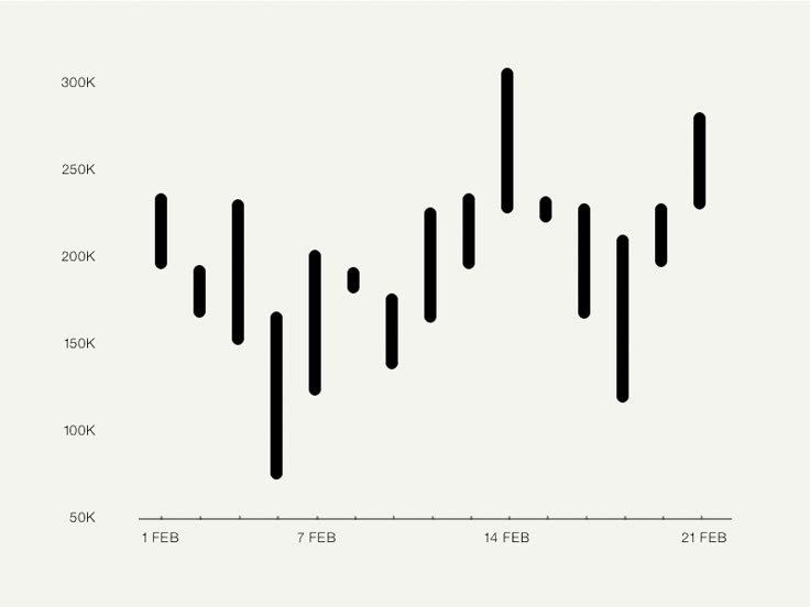 This is a line chart displaying fluctuating data points over time, characterized by a stark, minimalist design focused purely on the visual representation of the trend. The chart uses high contrast between the black data line and the light background to emphasize volatility in the measured values.