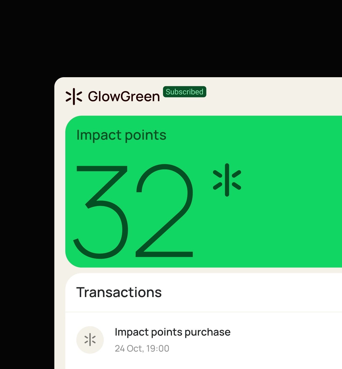 This interface features a clean, modern design focused on displaying metrics and transactional data. The visual language is minimalist, utilizing high contrast between bright green elements and a dark background to emphasize key information. The overall feel is professional, structured, and trustworthy.