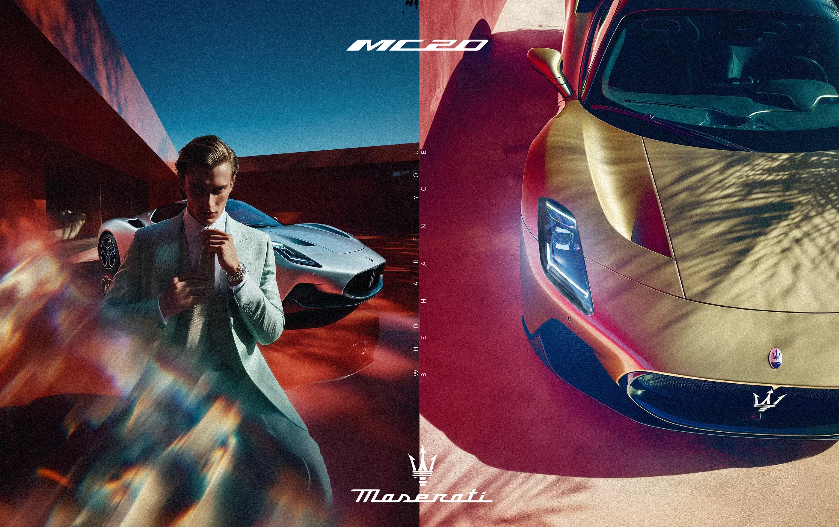 This image is a high-contrast, cinematic study blending automotive design with editorial fashion photography. The visual language emphasizes luxury, speed, and sophisticated elegance through dramatic lighting and rich, warm tones.