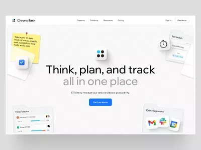 The design presents a clean, modern, and minimalist interface for a task management application. It utilizes ample white space and subtle iconography to convey efficiency and organization, resulting in a professional and uncluttered feel.