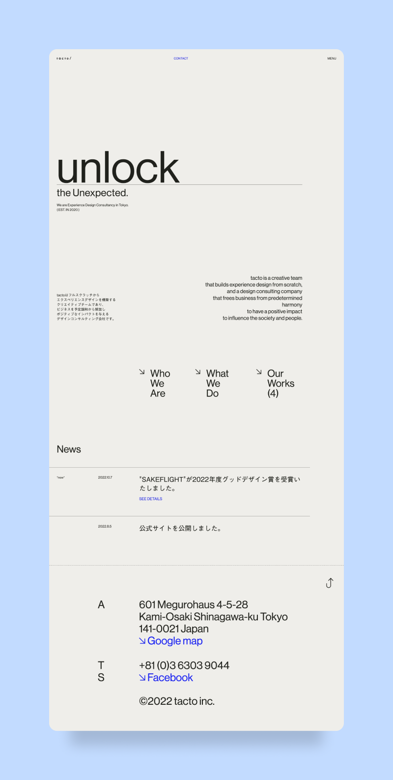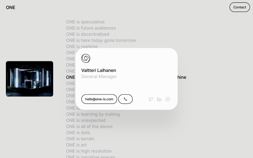 The design employs a clean, minimalist aesthetic dominated by neutral tones and ample whitespace to emphasize the text-based content. The visual hierarchy is strong, using typography and a focused white card to highlight key contact information against a subdued background.