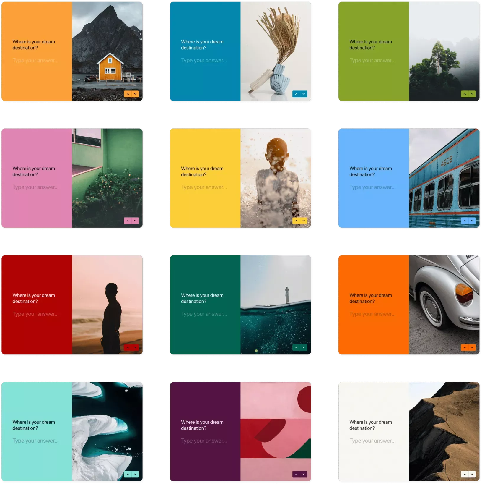 This image displays a grid of mockups, likely representing design templates or presentation slides, characterized by a clean, modern aesthetic with a focus on strong imagery and clear text placement. The designs utilize a mix of photographic elements and solid color blocks to create distinct visual narratives for various purposes.