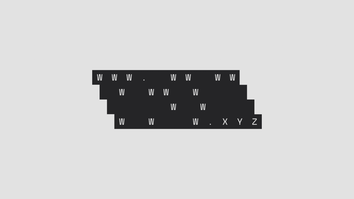 This is a minimalist typographic display featuring alphanumeric characters arranged in stacked, staggered rows against a neutral background. The design utilizes stark contrast and repetition to create a structured yet sparse visual pattern, emphasizing information or data.