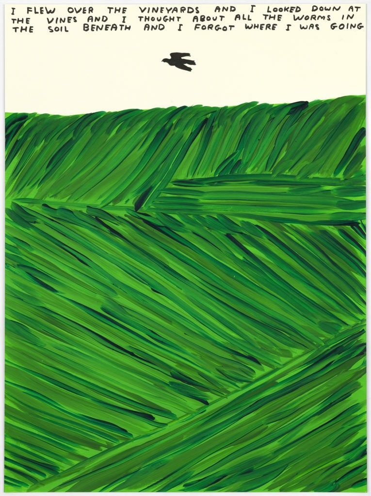 This image features an expressive, fluid stroke of deep blue watercolor paint, suggesting the silhouette of a bird in flight. The visual language is organic and dynamic, relying on the transparency and bleeding quality inherent to watercolor medium to create movement.
