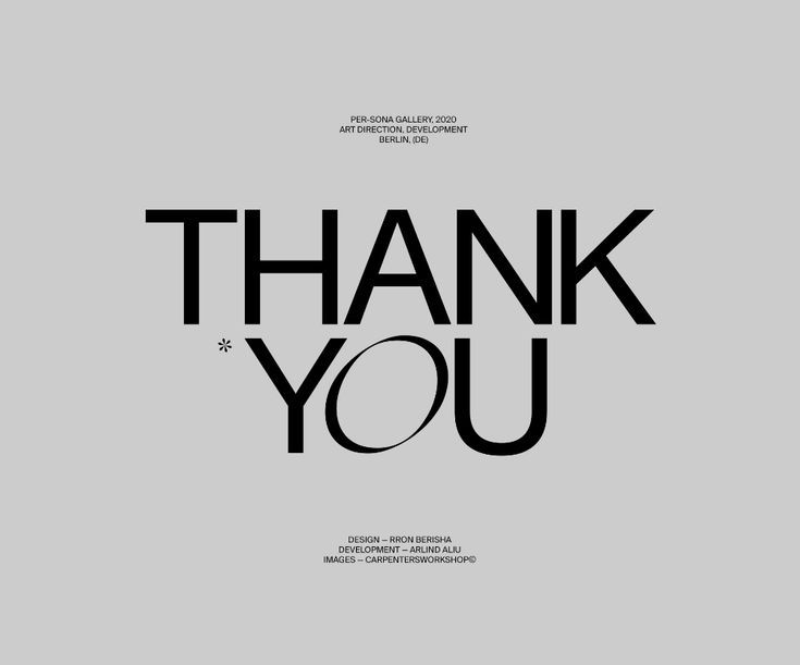 This is a minimalist and sophisticated typographic design featuring the phrase "THANK YOU" in bold, sans-serif uppercase letters. The layout is clean and centered, relying heavily on negative space to convey a sense of gratitude and modern professionalism.