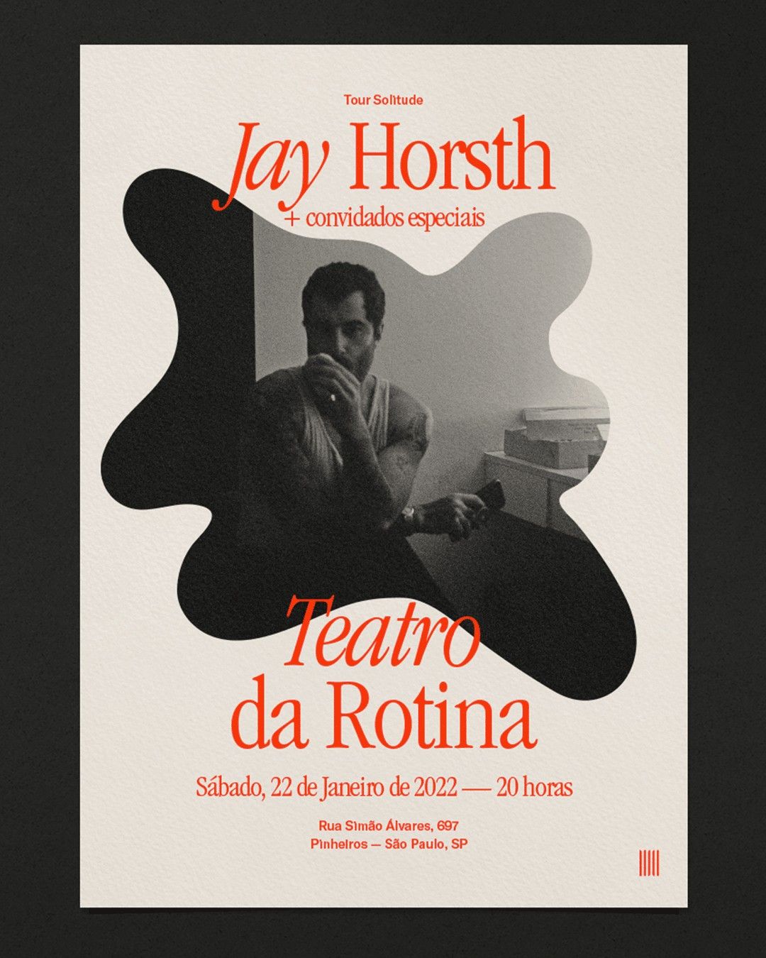 The image presents a clean, modern, and minimalist promotional layout using strong color blocking and high contrast. It effectively uses negative space and bold typography to convey information clearly and with a sophisticated, contemporary aesthetic.