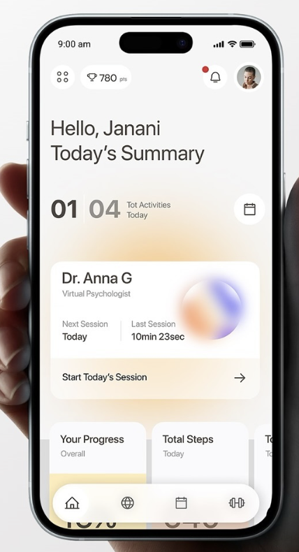 The interface presents a clean, modern, and minimalist design typical of a health or wellness application. It utilizes ample white space and subtle gradients to create a calm, professional, and user-friendly experience.