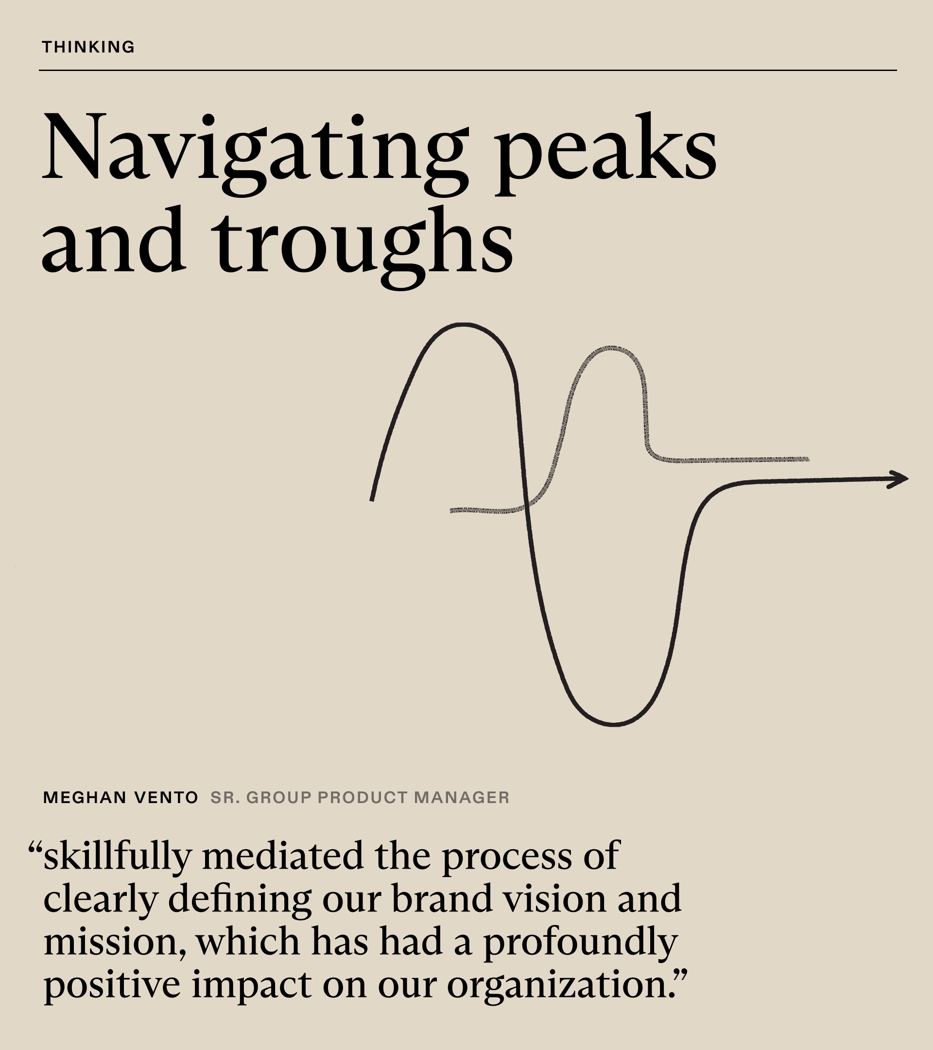 This design employs a minimalist and sophisticated visual language, pairing strong typography with abstract line art to convey themes of navigation and process. The clean lines and muted color palette create a sense of calm professionalism and thoughtful introspection.