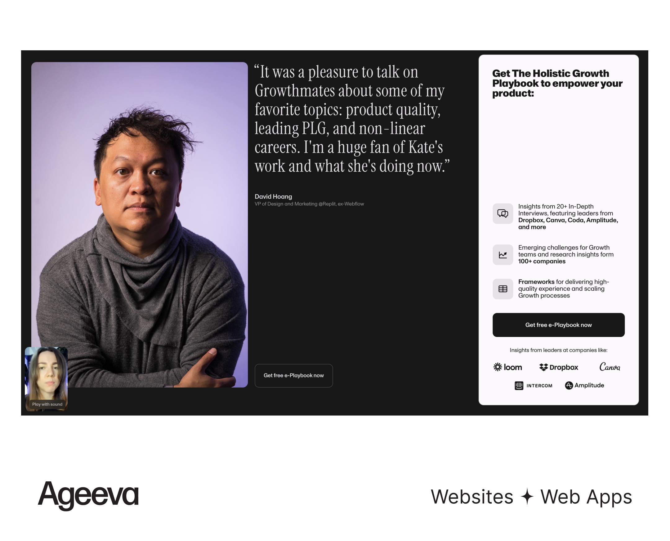 The design employs a clean, high-contrast aesthetic utilizing professional photography and clear typography to establish credibility. The layout is structured and balanced, effectively directing the viewer's eye towards the testimonial and actionable calls to action.