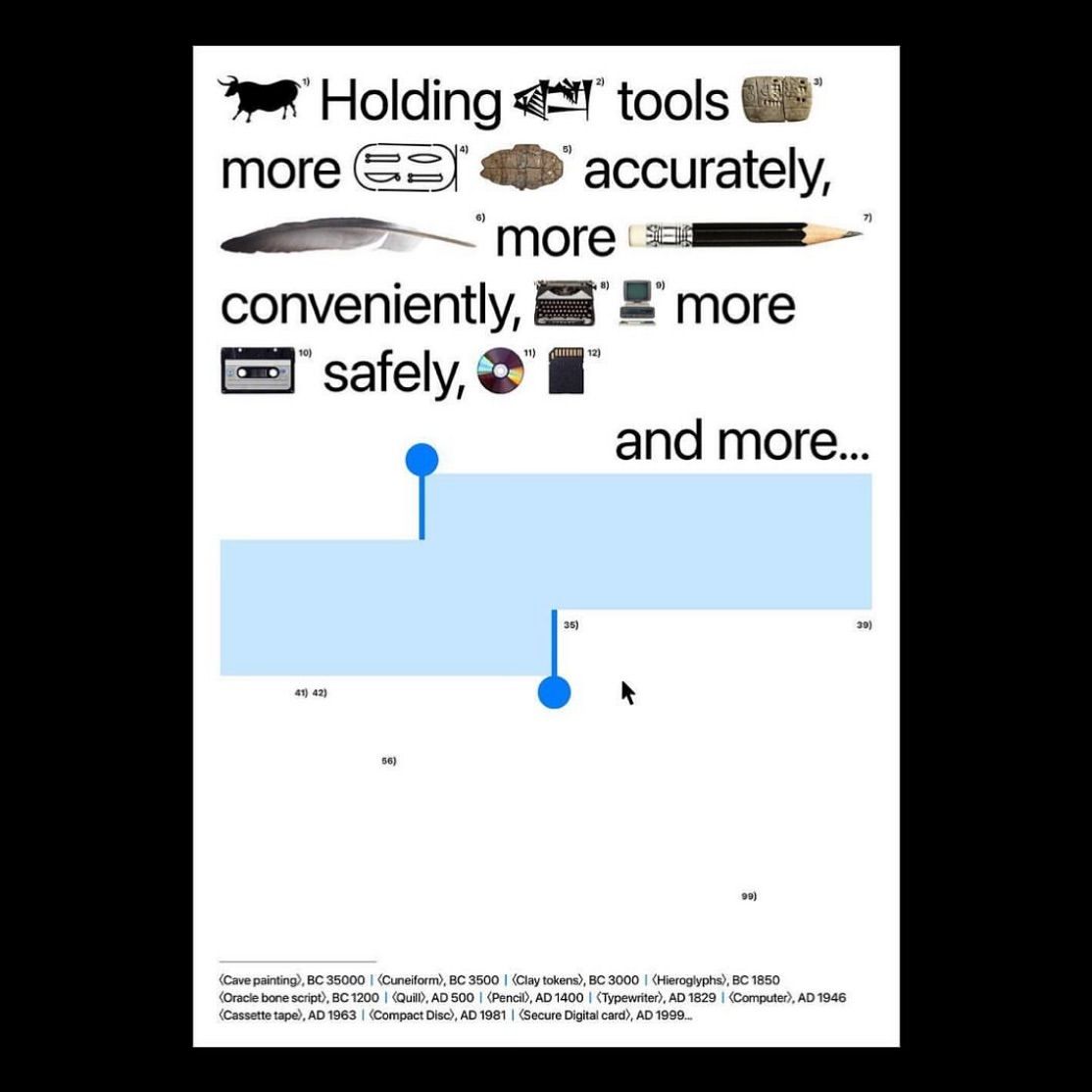 A minimalist, conceptual design poster that combines hand-drawn tool illustrations with geometric UI elements and sans-serif typography. The layout uses a clean white background with strategic blue accent shapes and interactive-looking circular nodes, creating a modern, instructional aesthetic that bridges analog and digital design languages.