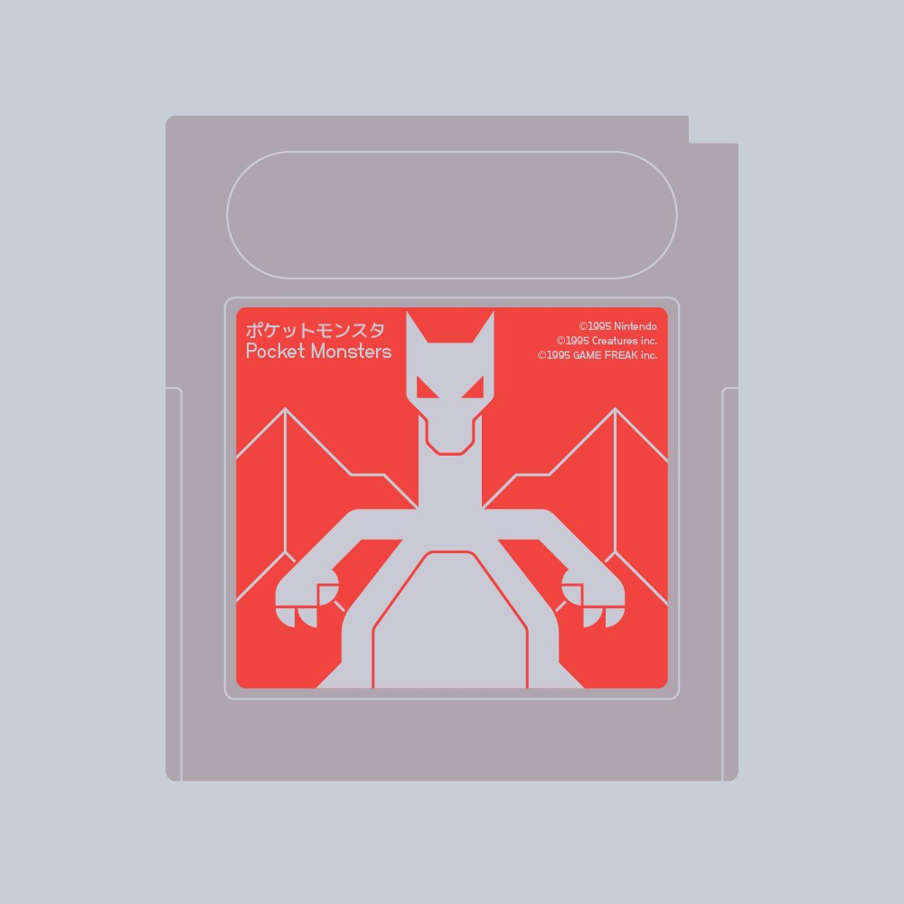 This design utilizes a strong, flat graphic style with high contrast between warm reds and cool grays to create an energetic yet clean aesthetic. The illustration focuses on a stylized creature silhouette, effectively conveying brand identity within a structured card format.