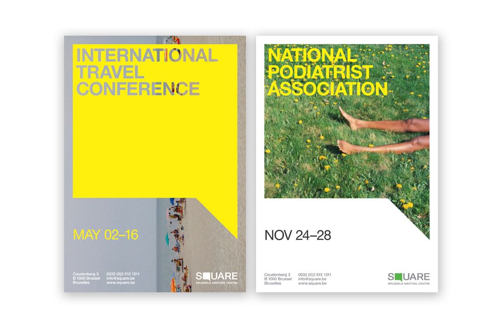 The design is clean, modern, and highly functional, using a strong contrast between bright yellow and muted natural greens. It employs a minimalist layout to clearly present event information, suggesting professionalism and clarity.