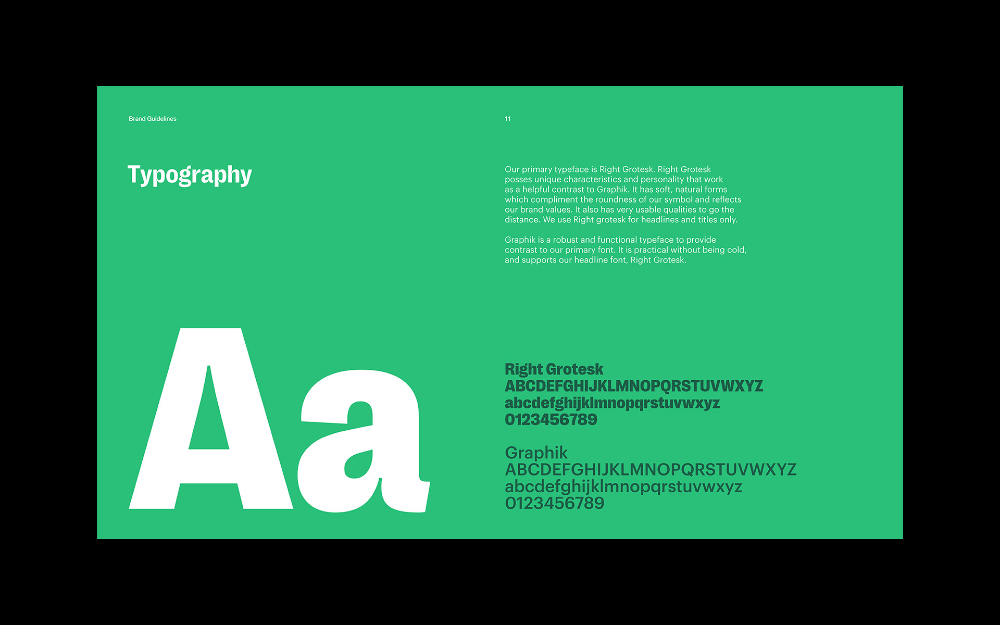 This design features a clean, professional presentation focused on typographic harmony and elegance. The visual language relies on high contrast between deep muted greens and a neutral background to create sophisticated and focused content.