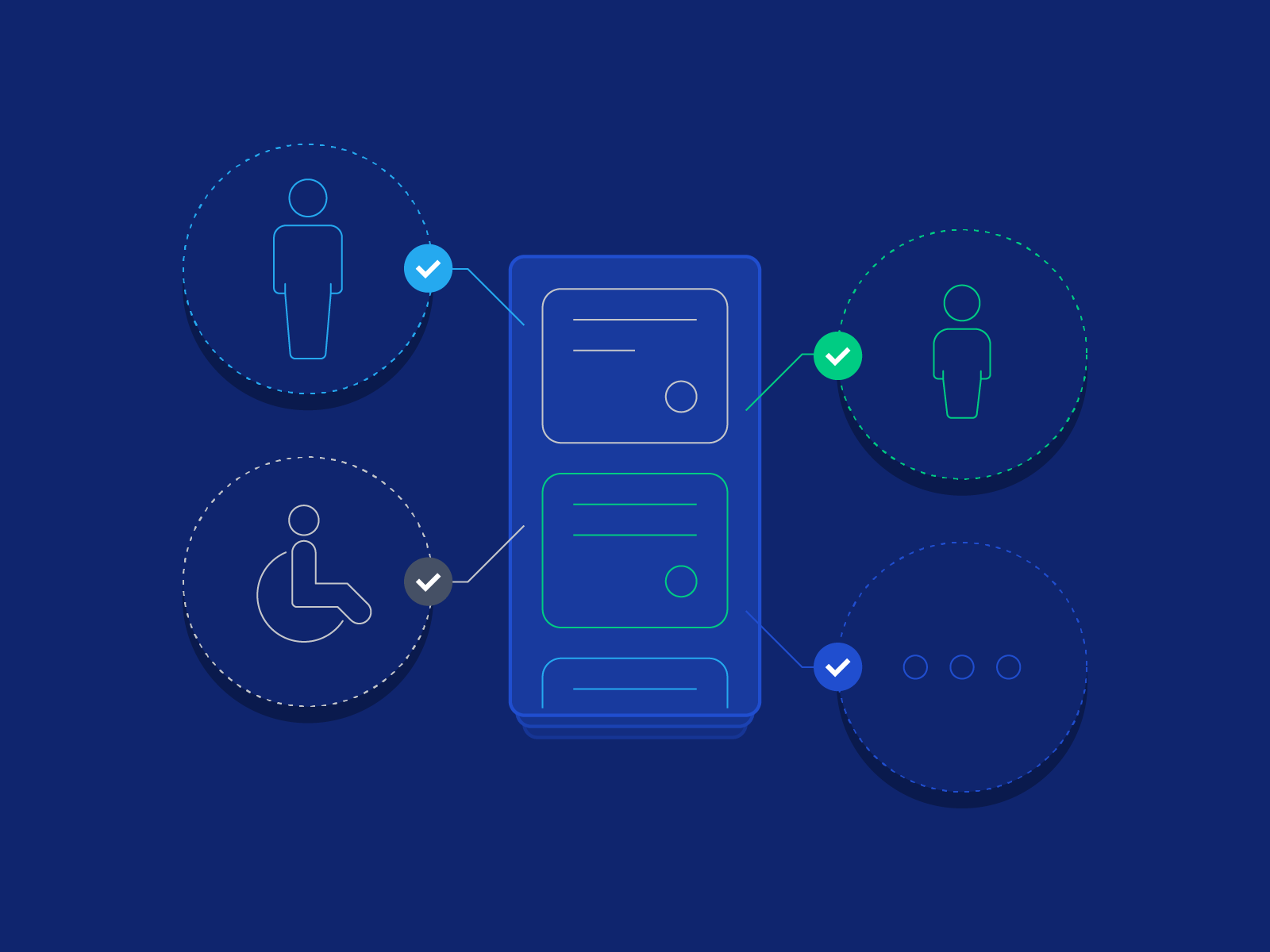 The image presents a clean, modern infographic style illustrating a process or verification flow using simple line art icons connected to a central data block. The design relies on clear delineation and subtle use of color to guide the viewer through the steps.