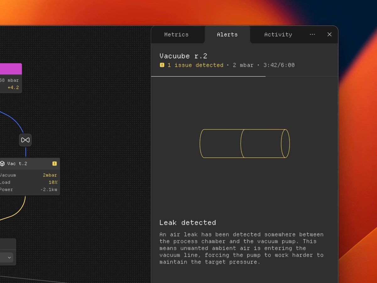 This interface utilizes a dark theme with high contrast to present complex technical data clearly. The design is functional and minimalist, prioritizing readability and the precise display of metrics and alerts necessary for operational monitoring. The visual language is strictly utilitarian, focused entirely on providing actionable information.