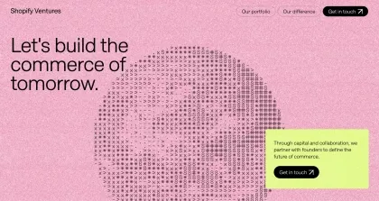 A modern fintech landing page featuring bold geometric shapes and a vibrant blue gradient background. The design employs a minimalist approach with elegant serif typography and high contrast, creating a premium and trustworthy aesthetic for a capital funding platform.