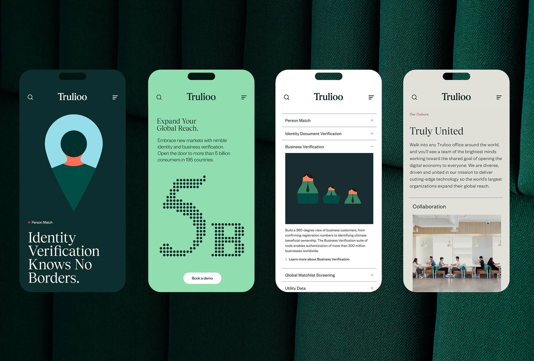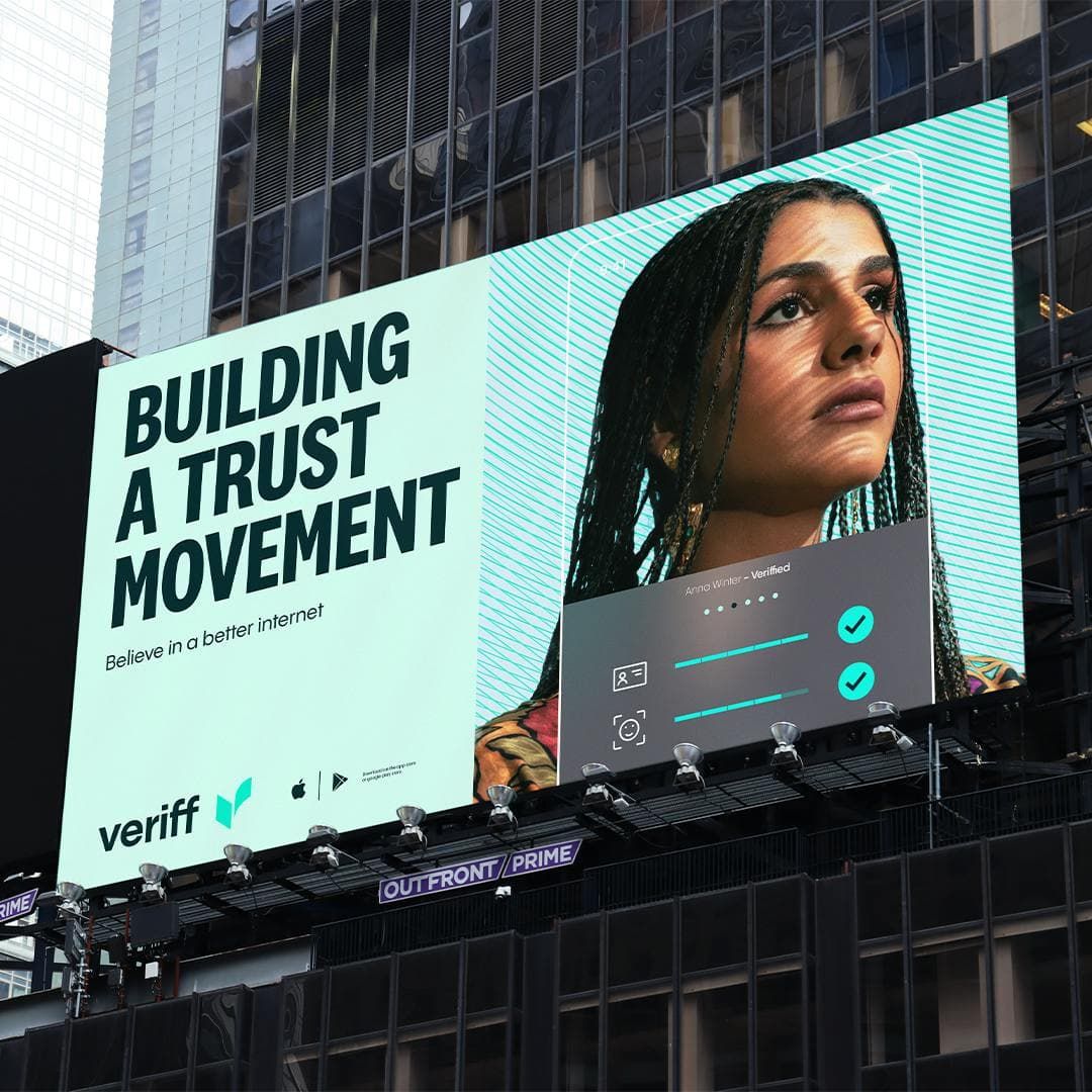 The image features a large, clean graphic overlaying an urban architectural background, focusing on a portrait of a woman and bold, clear text. The design employs a modern, professional aesthetic with a strong emphasis on trust and verification, utilizing negative space effectively.