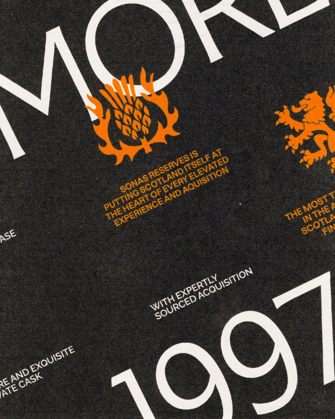 This design utilizes high contrast between stark white text and a dark background, lending it a clean yet vintage or retro archival feel. The composition relies on bold typography and a single, warm accent color to highlight key phrases and elements.