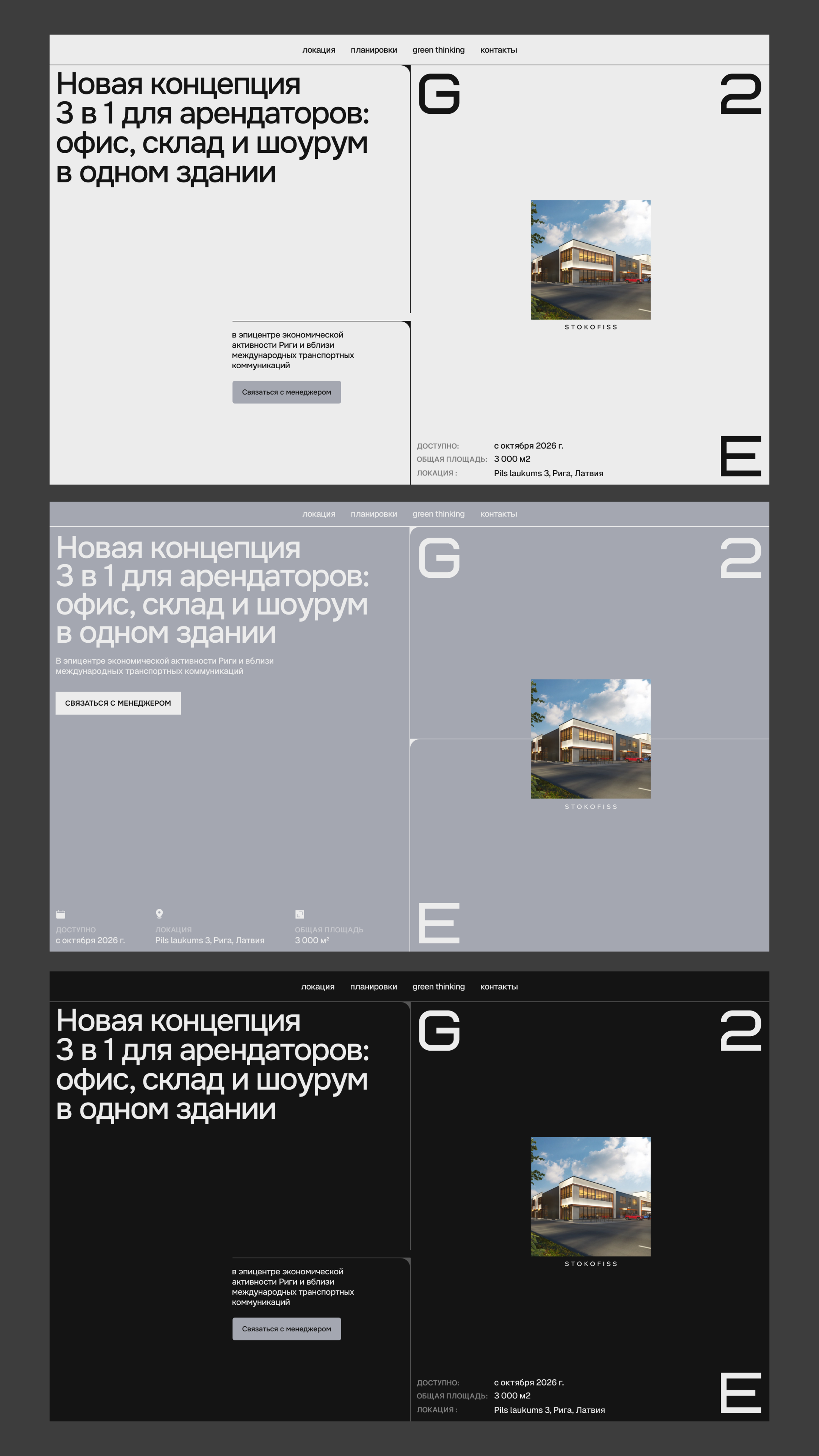 The design employs a highly structured and minimalist approach, utilizing ample negative space and clean lines to present complex commercial real estate information. The visual language is corporate, emphasizing clarity, professionalism, and a modern, organized aesthetic through precise typography and restrained color usage.