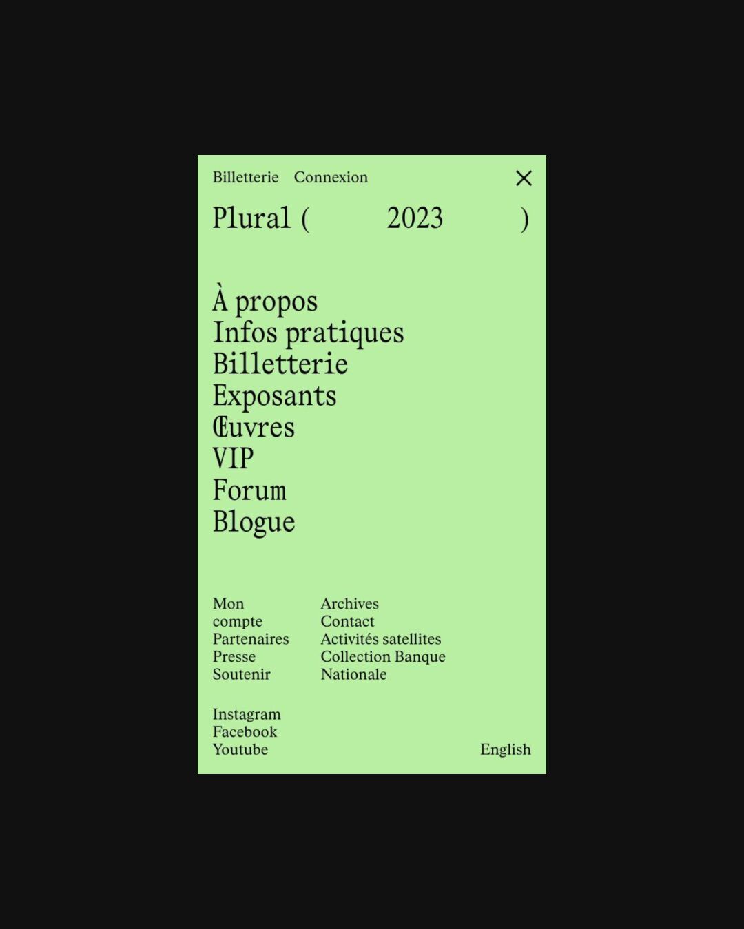 The design is minimalist and clean, utilizing a light, muted green as the primary background color against a dark background. The layout is text-heavy and organized in a simple, vertical list format, suggesting an informational or navigation menu.
