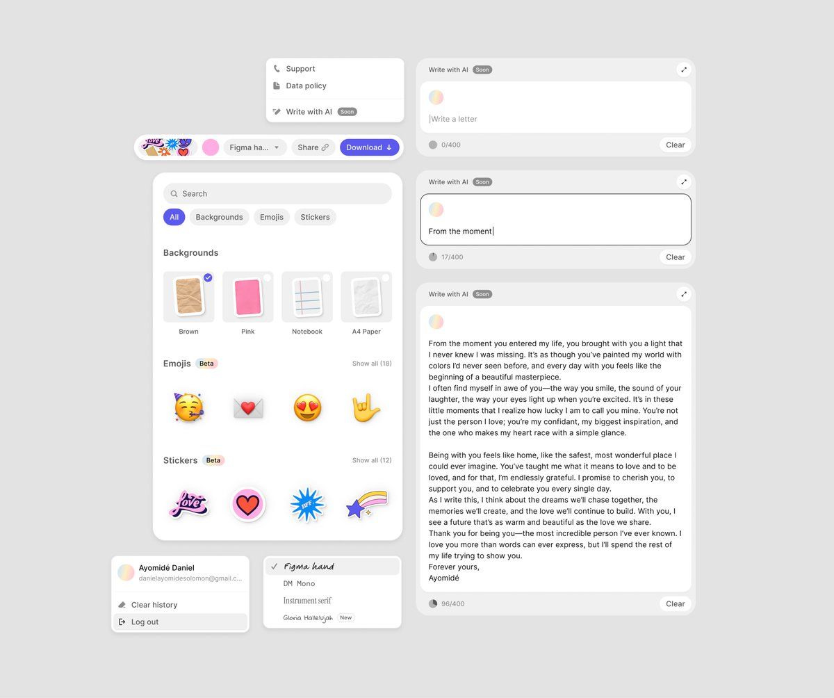 This image captures a functional, template-based digital workspace, characterized by a clean, grid-like structure for organizing design assets. The visual language is utilitarian, prioritizing ease of access to various decorative elements and text prompts.
