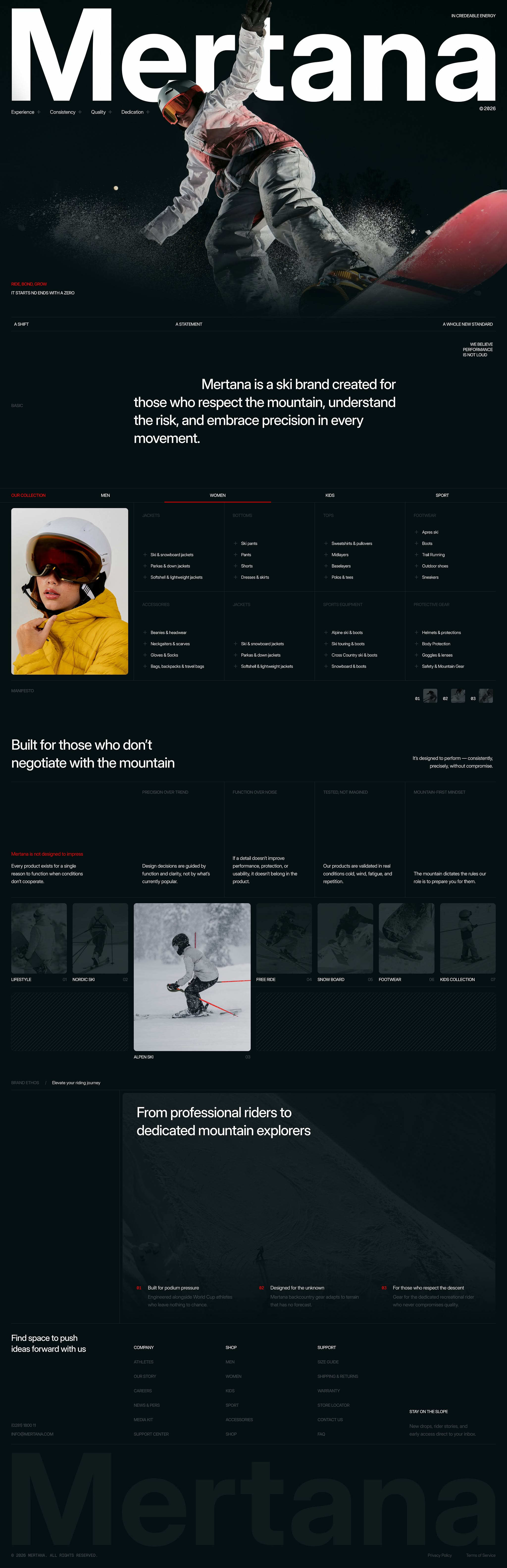 The design employs a clean, modern aesthetic with a strong emphasis on negative space and high-contrast typography. It uses an earthy, muted color palette to evoke a sense of ruggedness and premium experience.