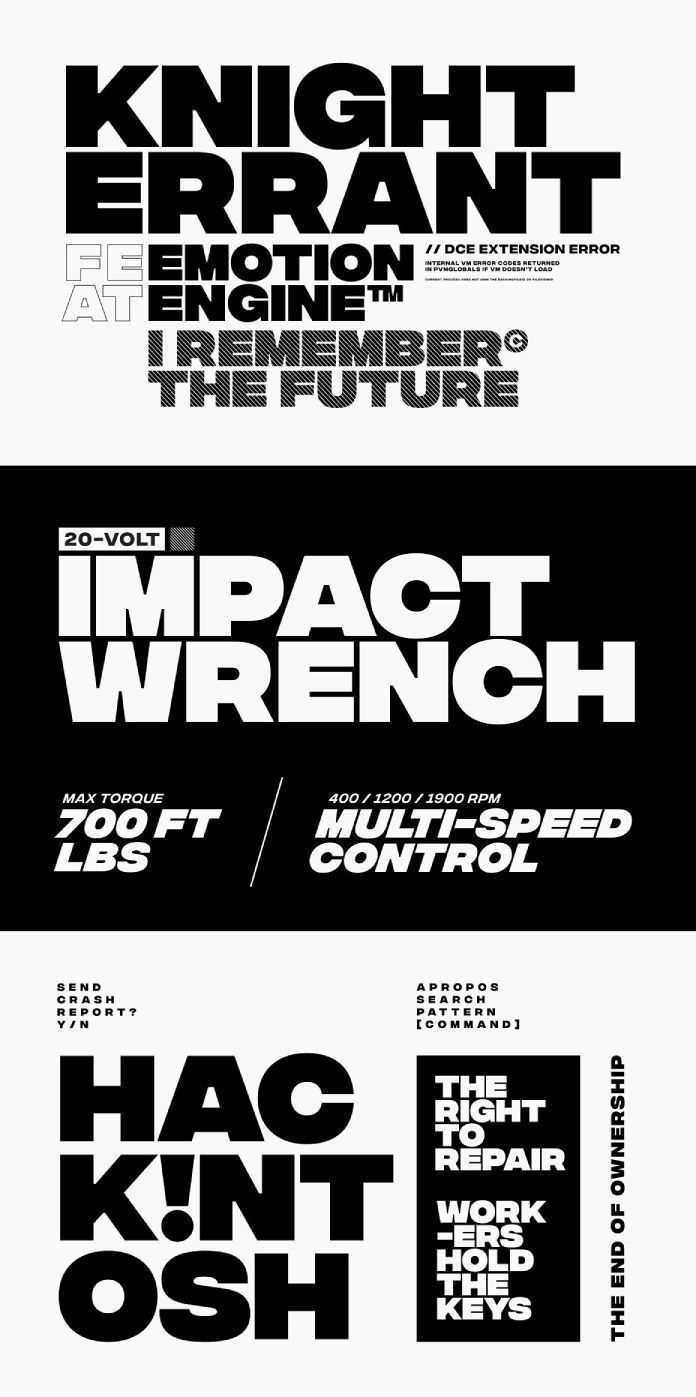 This design utilizes a stark, high-contrast, and aggressive typographic style typical of automotive or performance branding. The layout is dominated by bold, condensed sans-serif text stacked vertically, conveying a sense of raw power and technical precision.