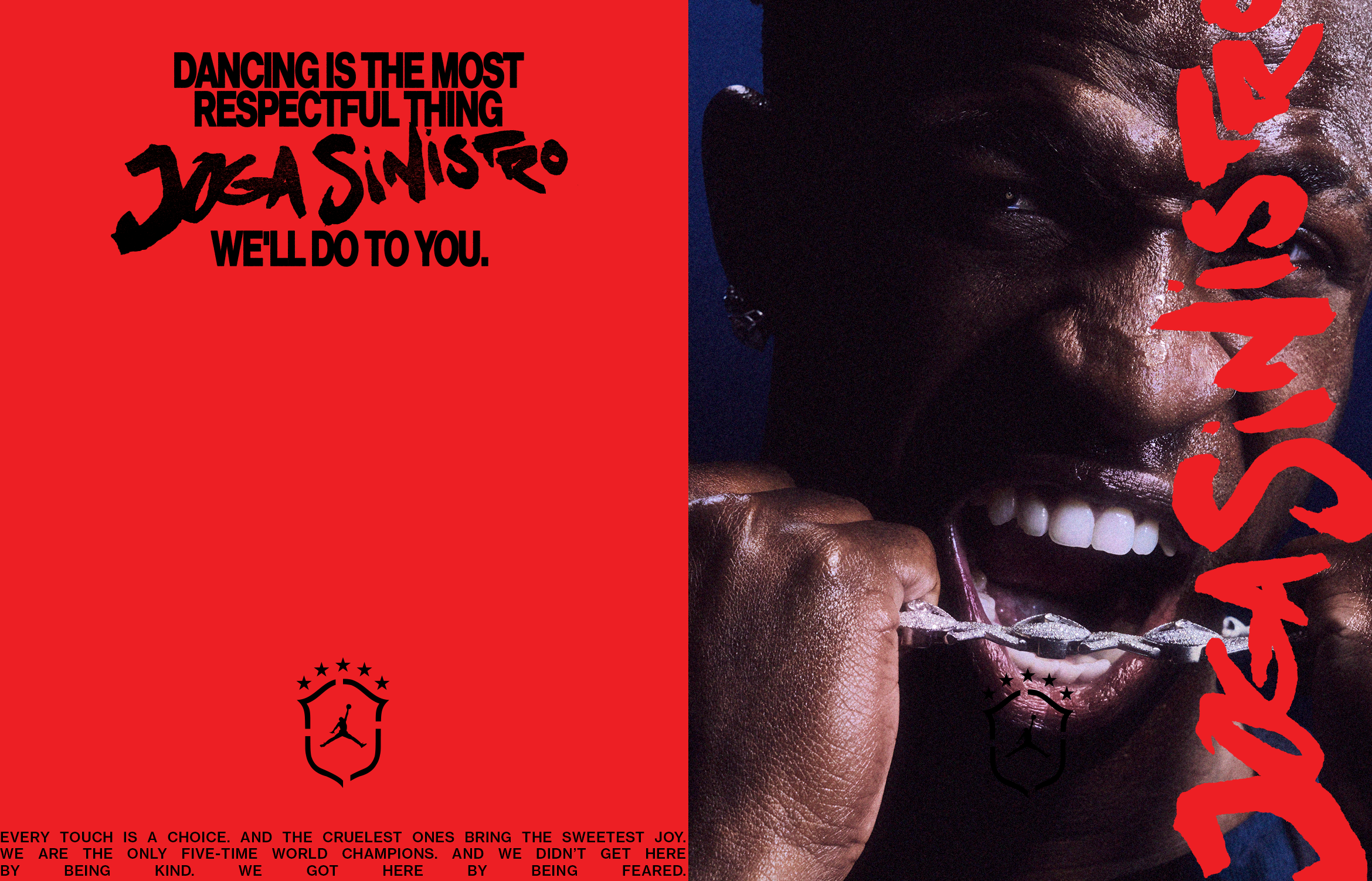 This design utilizes a high-contrast, confrontational visual language blending raw photography with distressed typography. The composition uses bold color blocking and layered text to convey an aggressive, passionate, and rebellious attitude.