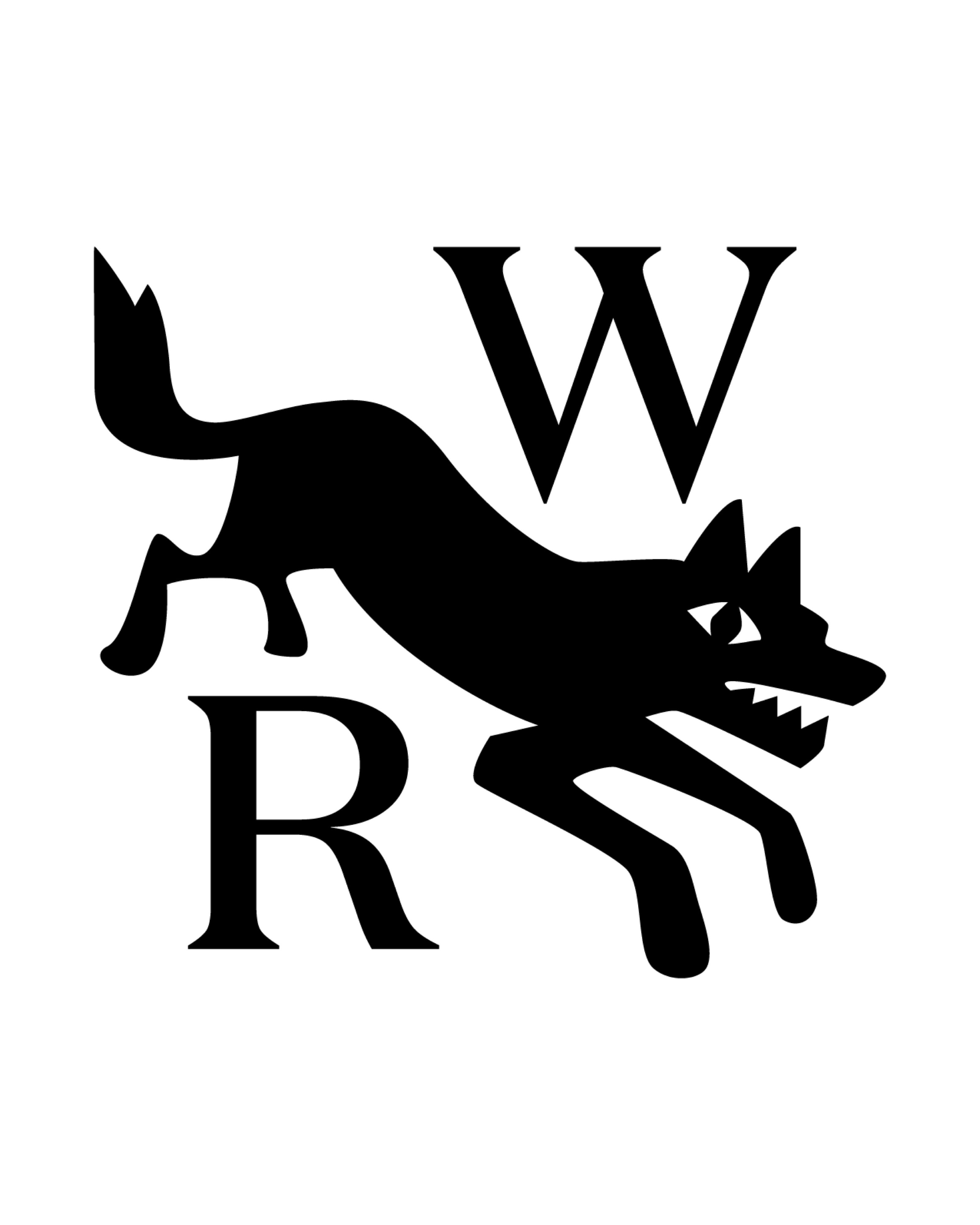 This is a high-contrast, powerful graphic design featuring a dynamic silhouette of a canine combined with bold typographic elements (W and R). The visual language is stark and immediate, relying on negative space to emphasize the aggressive movement and strong form. The design conveys a sense of wildness, strength, and memorable branding.